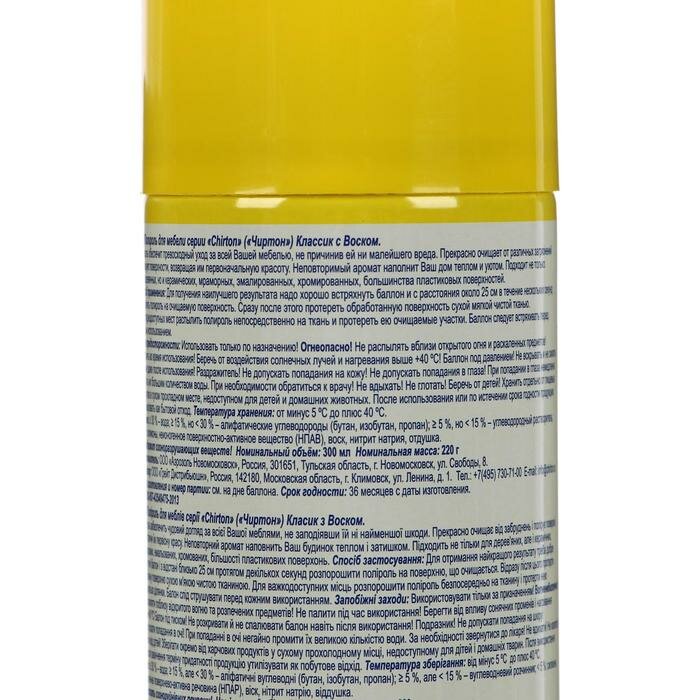Полироль для мебели 300 мл, CHIRTON (Чиртон) антипыль, "Классик с воском", аэрозоль В комплекте: 1шт.