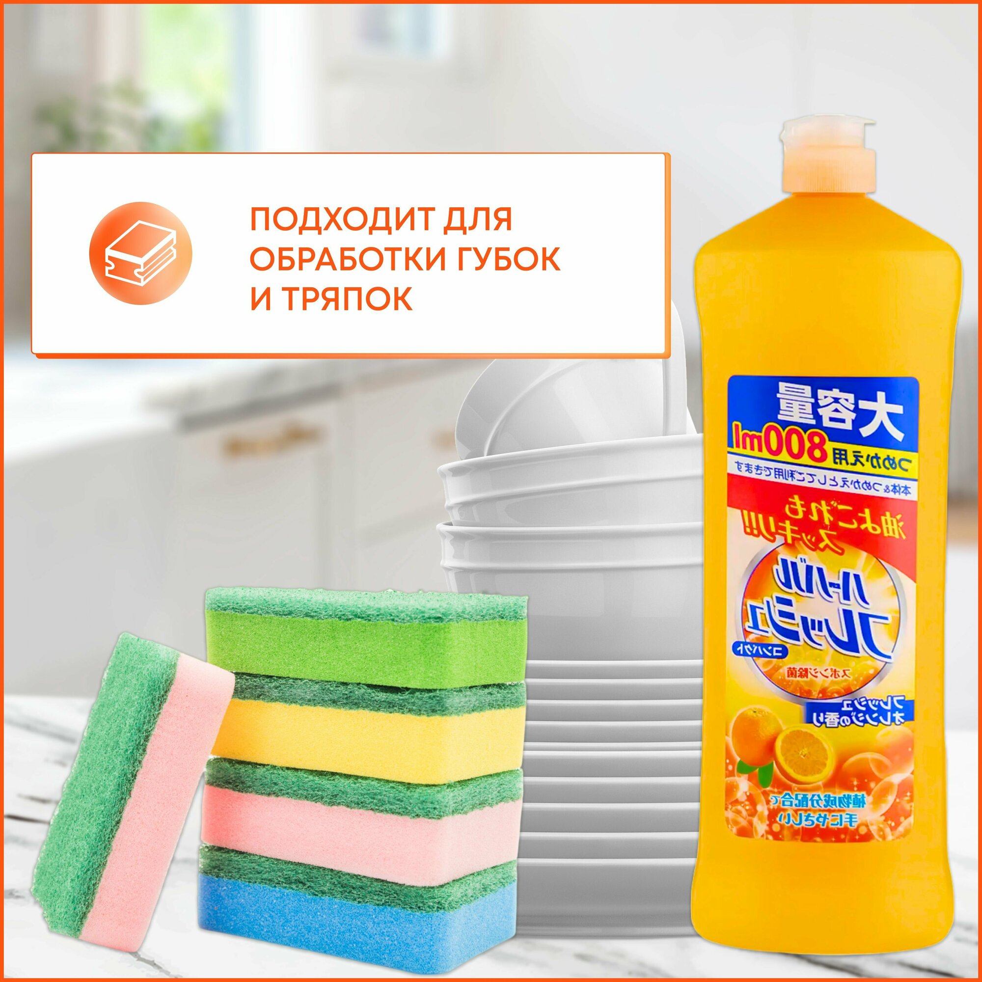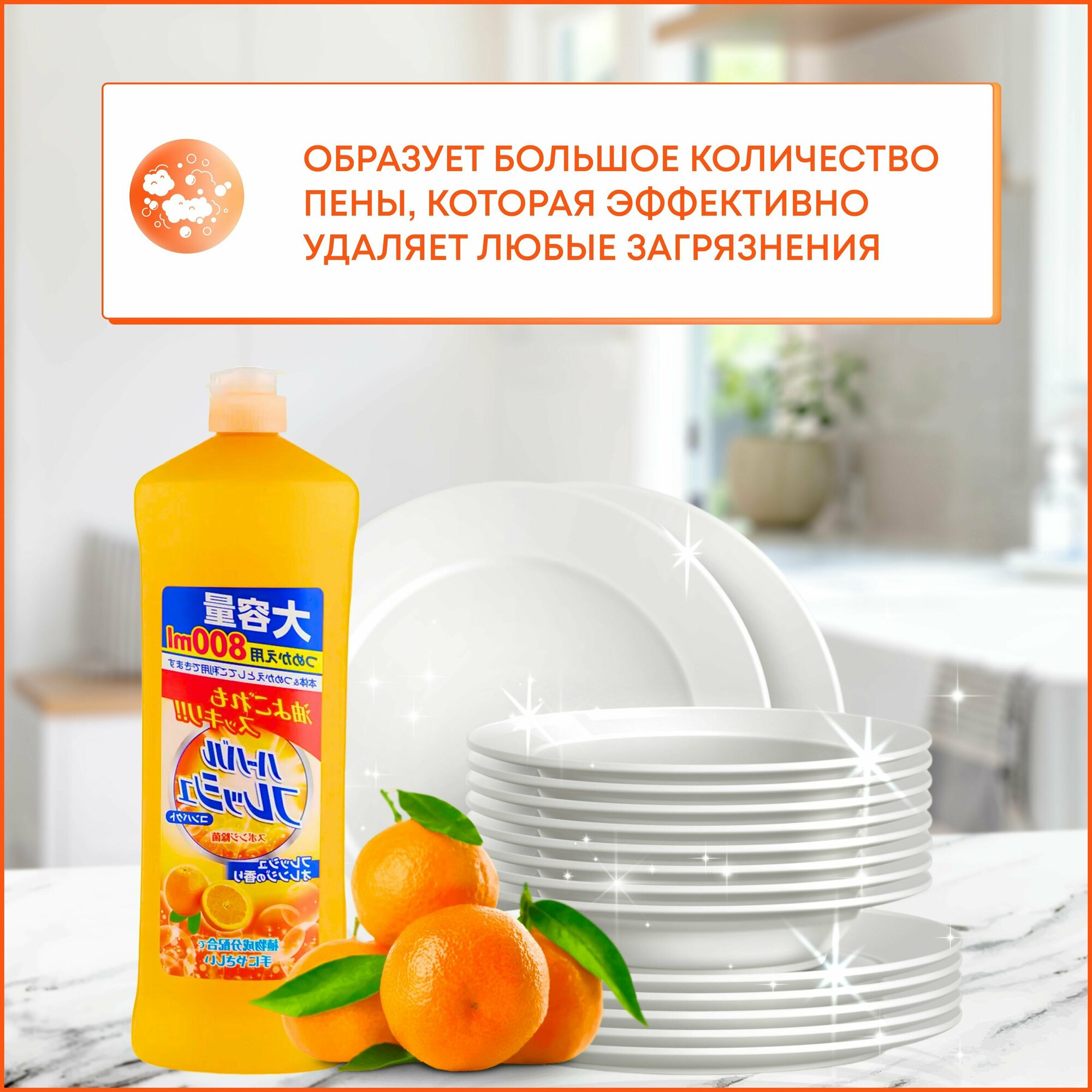 Японское концентрированное средство для мытья посуды, овощей и фруктов, с ароматом апельсина, 800 мл, Mitsuei, Япония