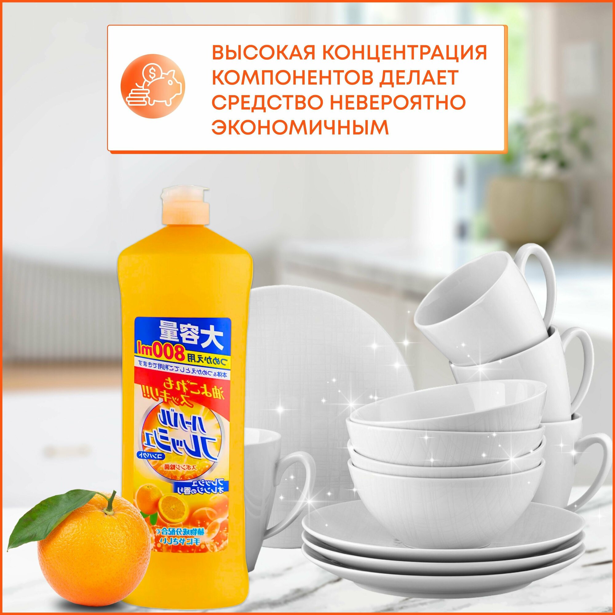 Средство для мытья посуды Mitsuei с ароматом апельсина, концентрированное, 800 мл