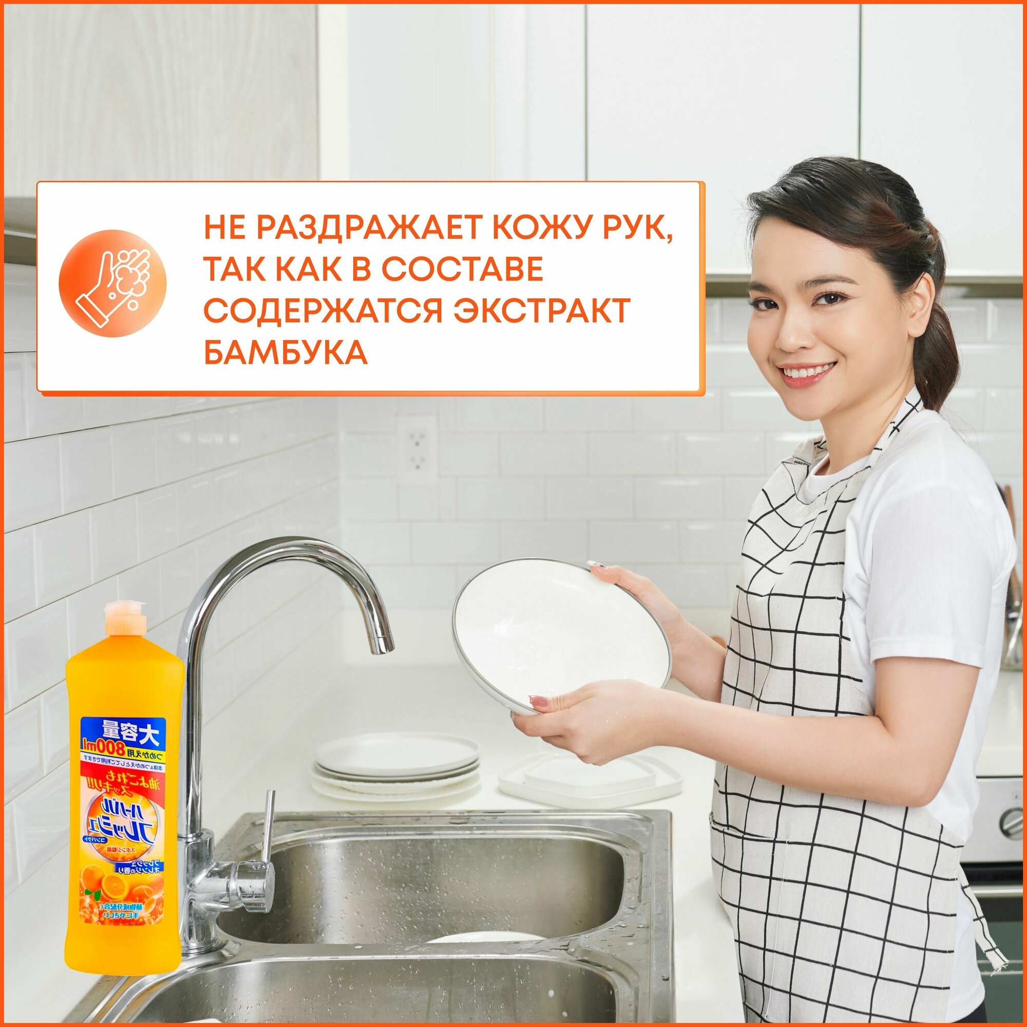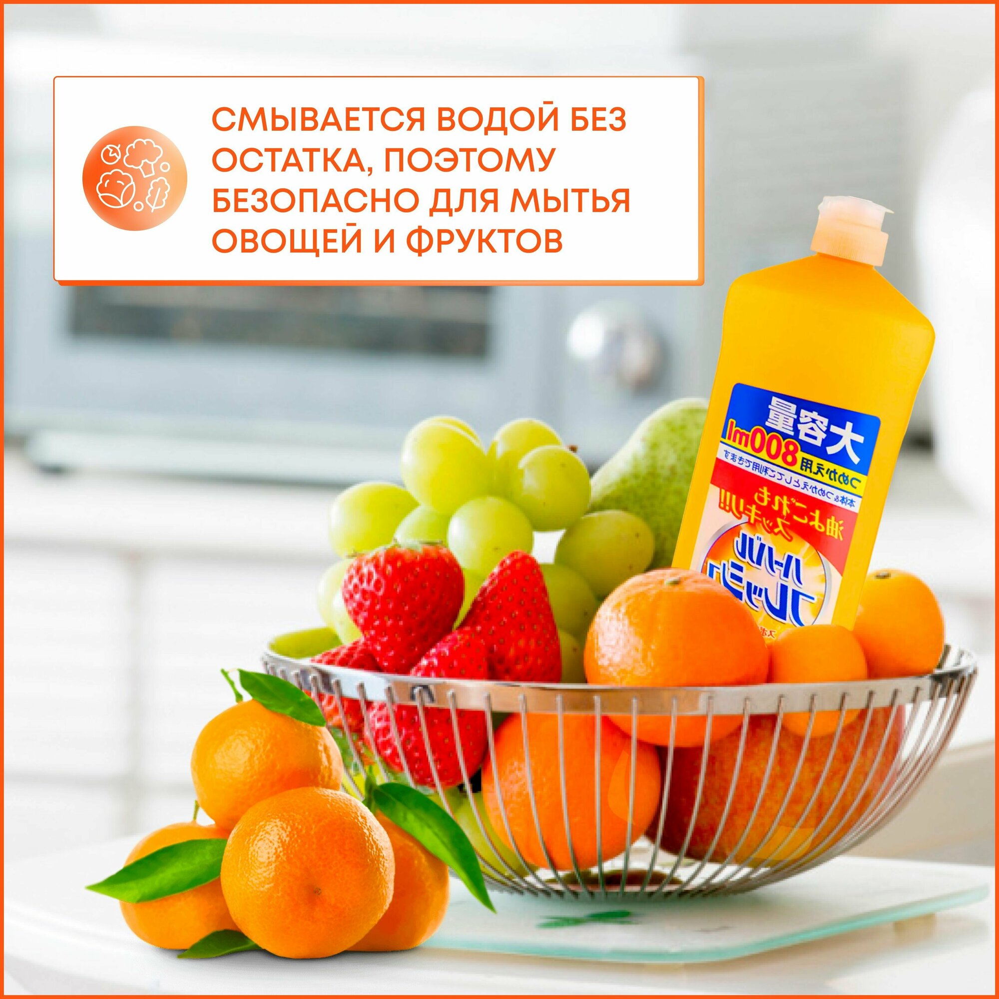 Mitsuei концентрированное средство для мытья посуды, овощей и фруктов с ароматом апельсина, 800 мл