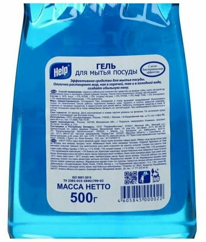 Help Гель для мытья посуды Антибактериальный, 0.5 л