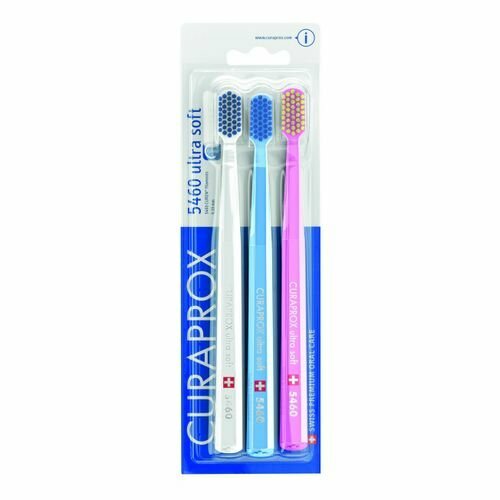 Набор зубных щеток Curaprox CS 5460 "UltraSoft", d 0,10 мм, 3 шт, (белый, синий, розовый)