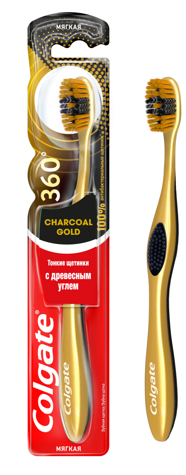Colgate зубная щетка 360 древесный уголь gold мягкая