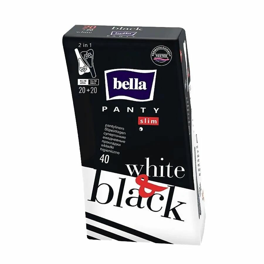 Прокладки ежедневные ультратонкие bella Panty Slim Black&White/ ежедневки для стринг, 40 шт.