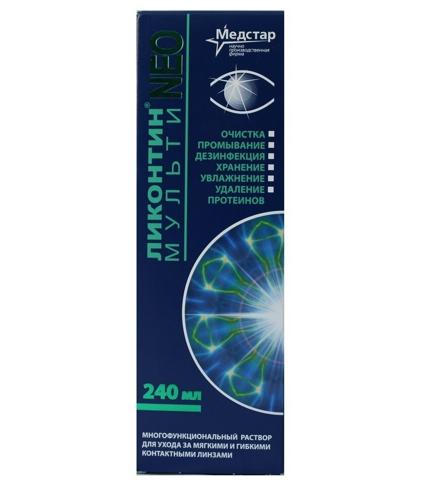 Многофункциональный раствор для контактных линз Медстар Ликонтин Нео Мульти, 240 мл