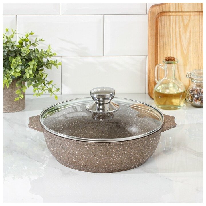 Мечта Жаровня «Гранит Brown», 2,4 л, d=26 см, стеклянная крышка, антипригарное покрытие, цвет коричневый