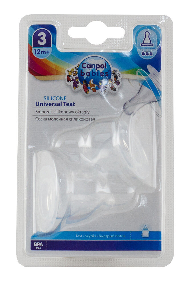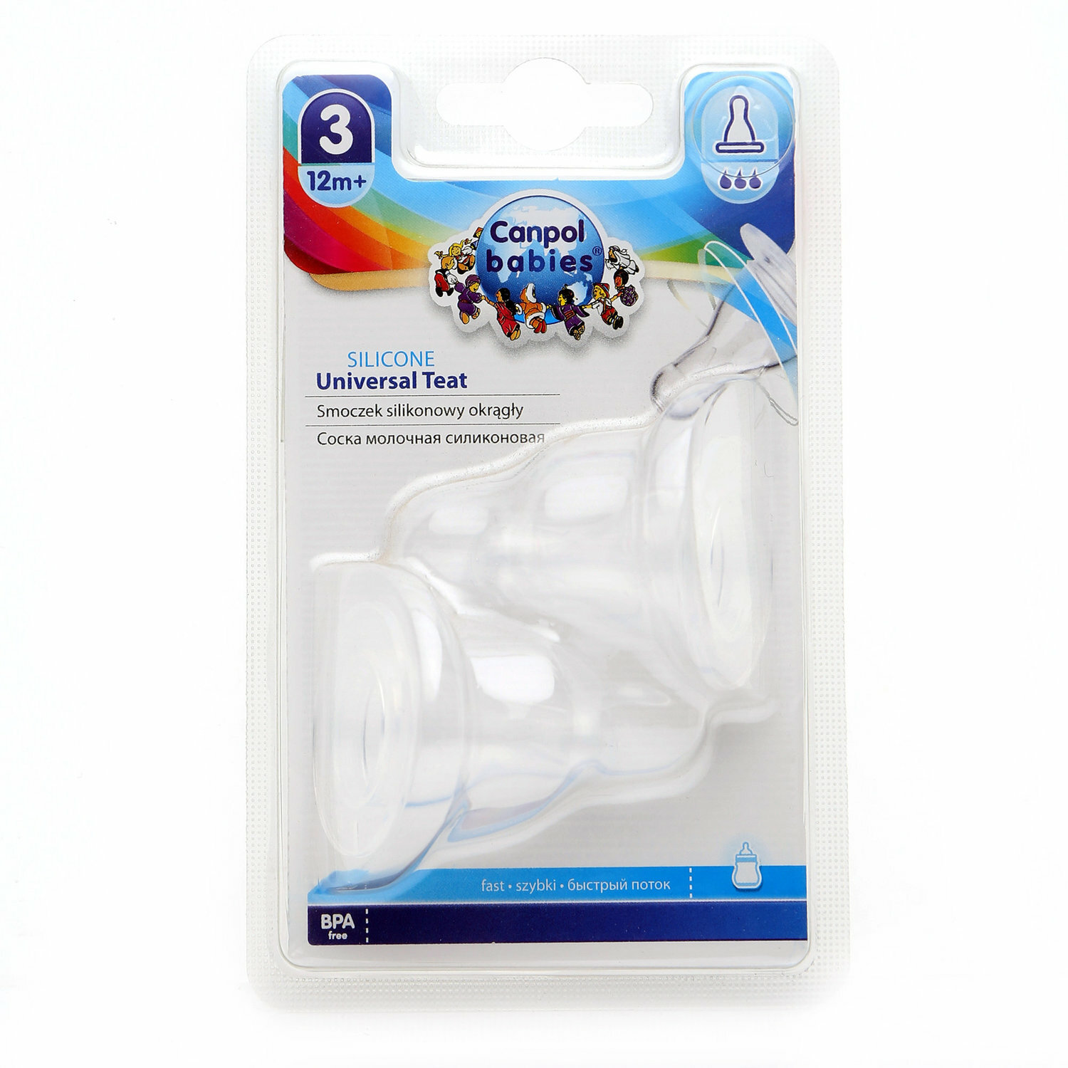 Соска Canpol babies силиконовая круглая, быстрый поток, 2 шт., для узкого горлышка