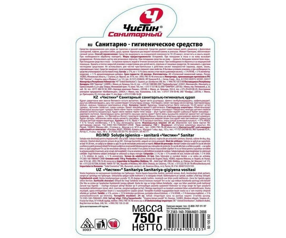 Чистин Санитарно-гигиеническое средство "Чистин" Санитарный, 750 гр