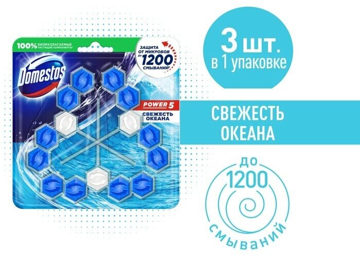 Domestos блок для унитаза Power 5 Свежесть океана, 3 шт., 0.055 кг