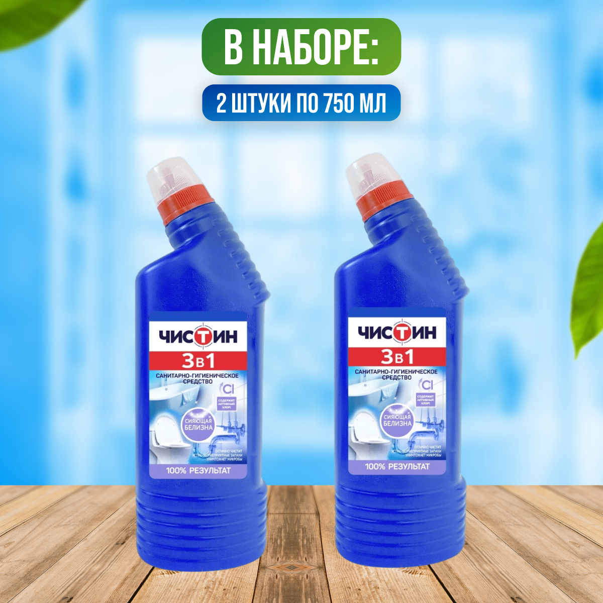 Чистящее средство санитарно-гигиеническое Чистин 3в1, активный хлор, 750мл, 2 штуки
