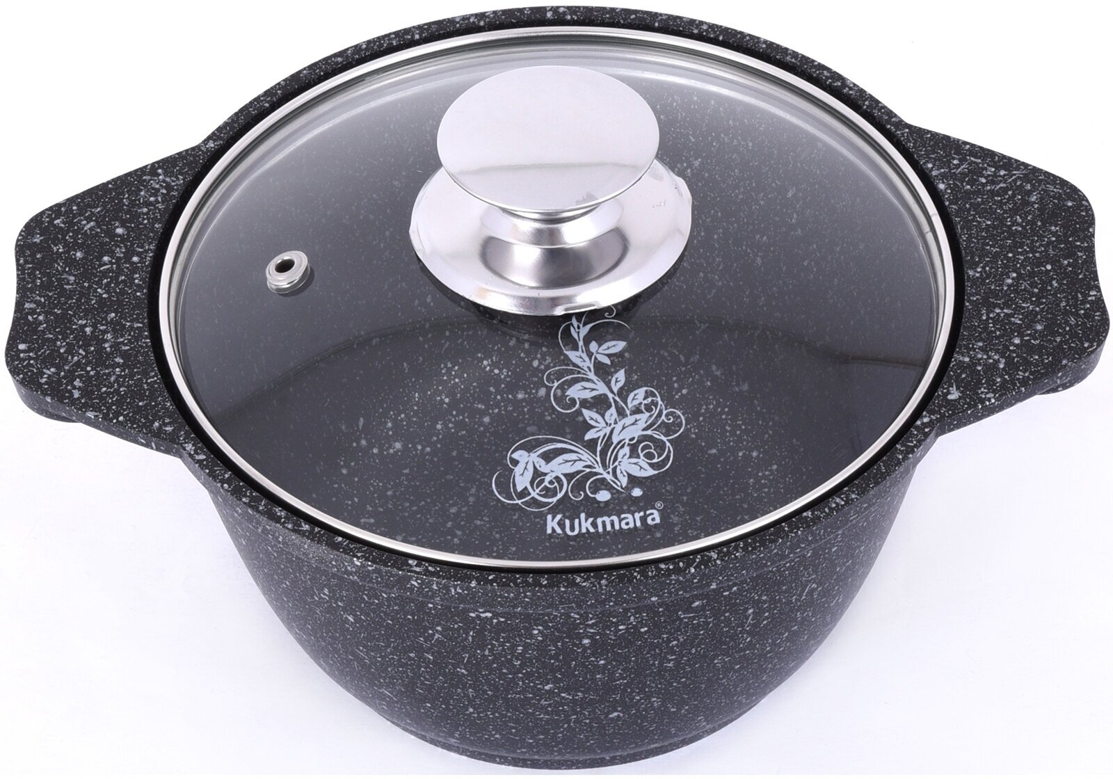 Кастрюля Kukmara "Мраморная" 3л с антипригарным покрытием (темный мрамор) со стеклянной крышкой