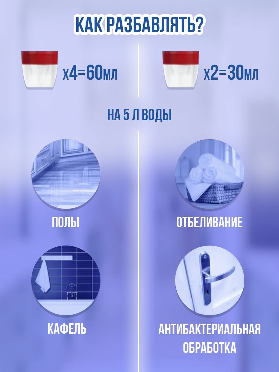 | Отзыв: | Привыкла к этому товару. Устраивает. Чищу туалет, ванну, лоток кошки. Хорошо дезинфицирует. Мою пол, добавляю немного средства в воду. В общем довольна. Большая упаковка хватает на долго, хоть и каждый день мою лоток кошки. |