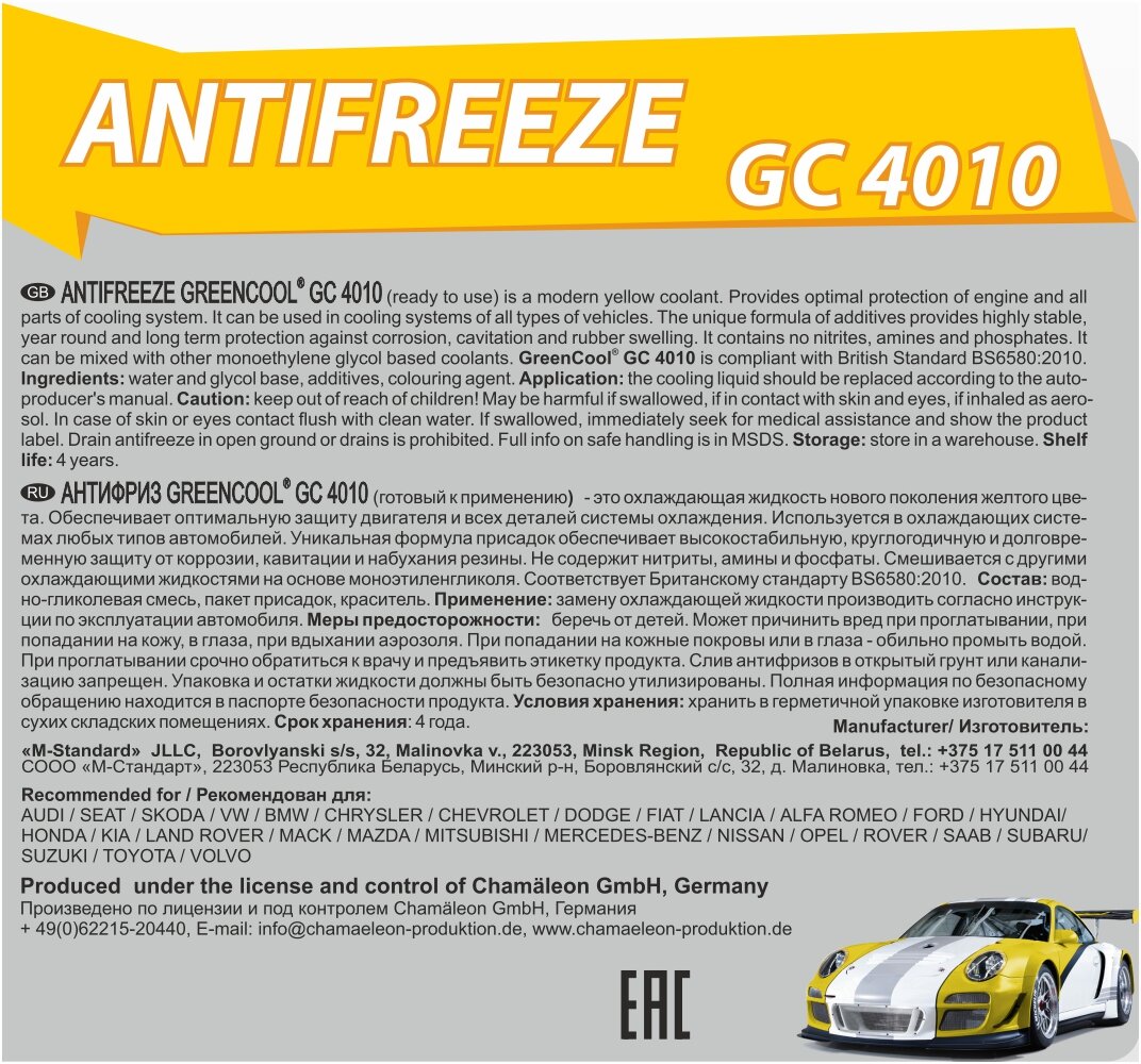 антифриз greencool gс4010 [жёлтый], готовый, 5кг