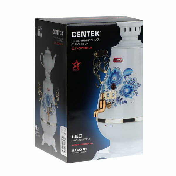 Centek Самовар Centek CT-0092 A, пластик, 4 л, 2300 Вт, LED индикатор, керамический заварник, белый