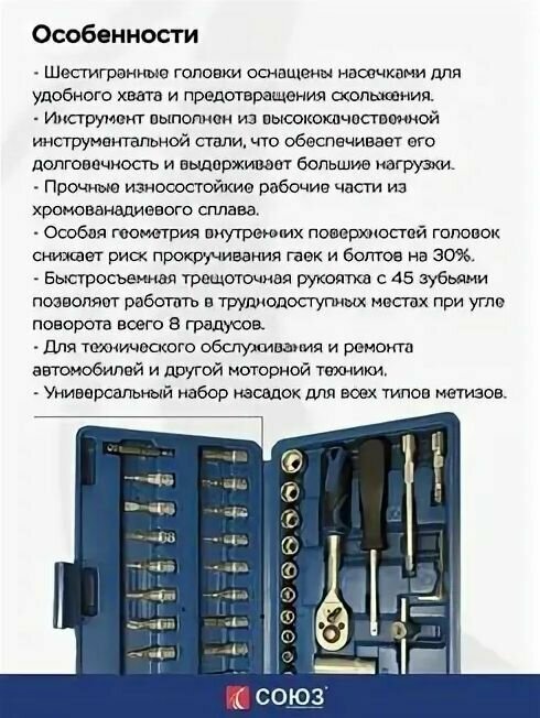 СохранитьНабор инструментов СОЮЗ 1045-20-S48С /48 предметов /73469/ интересное: