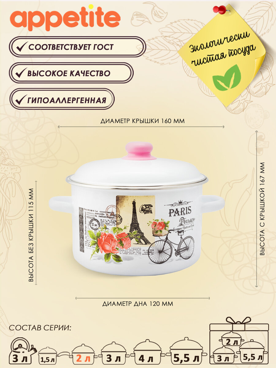 Кастрюля эмалированная с крышкой Париж 2л TM Appetite