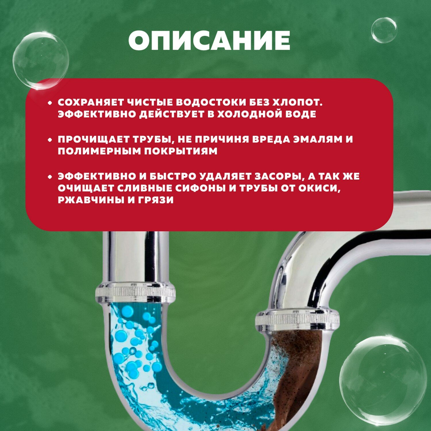 | Плюсы: | Идеально прочищает засоры, растворяет даже волосы |