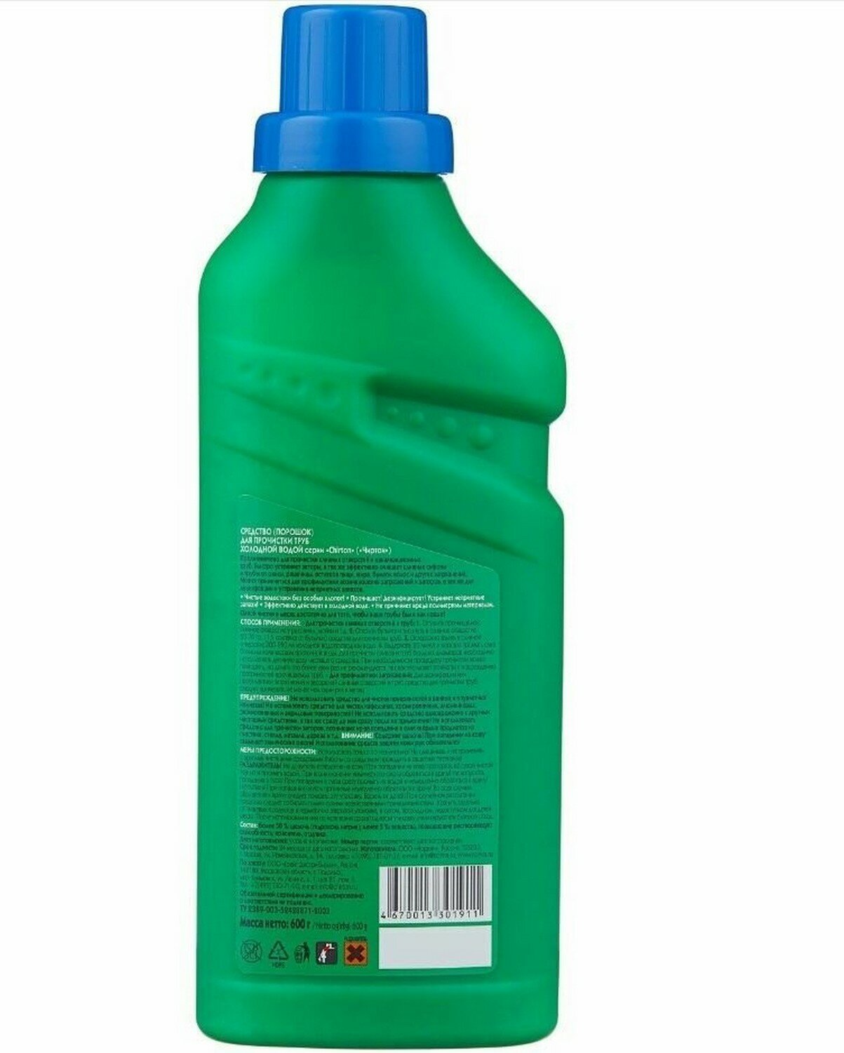 | Плюсы: | работает. реально прочищает трубы и смывает органические отложения |