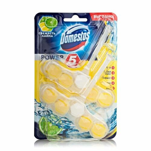 DOMESTOS Блок для очищения унитаза POWER 5 свежесть лайма 55 гр
