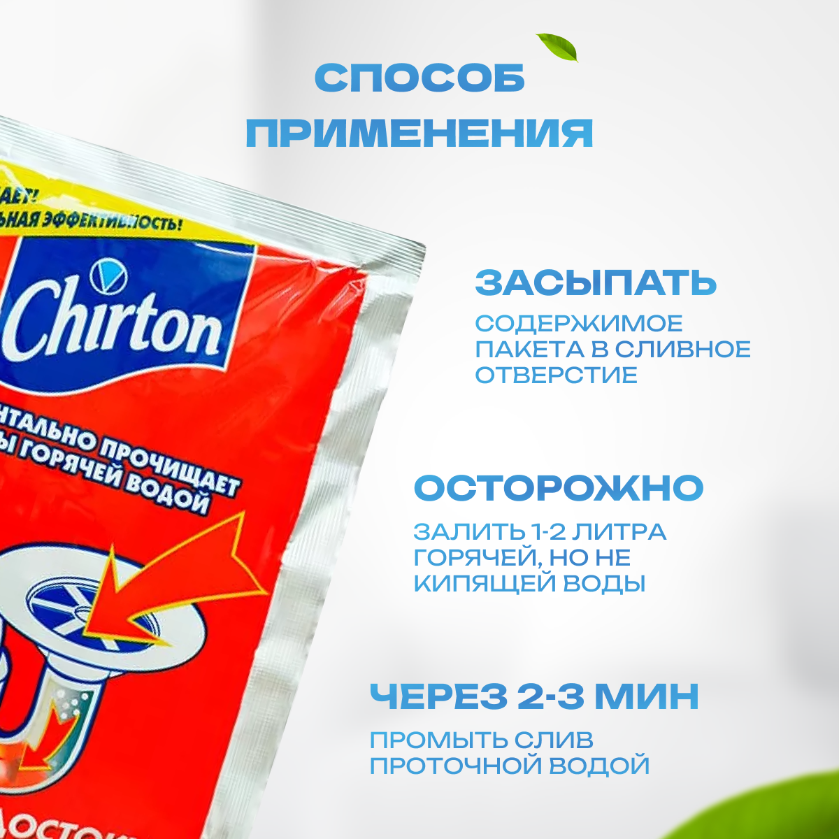 Chirton Порошок для прочистки канализационных труб горячей водой.