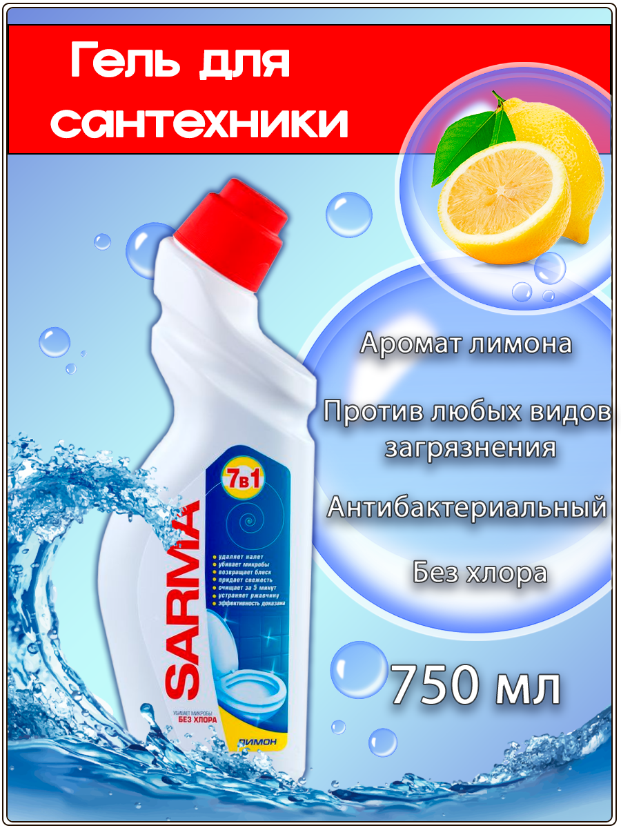 Чистящий гель для сантехники Sarma (Сарма) Лимон 7 в 1, 750мл х 1шт