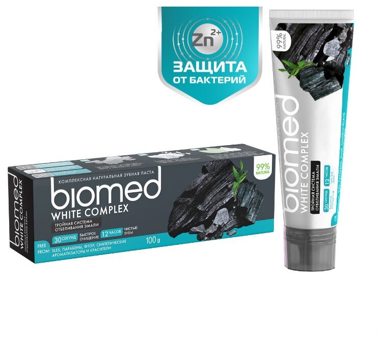 Зубная паста BioMed White Complex, Антибактериальная, отбеливающая, черная, 100 мл