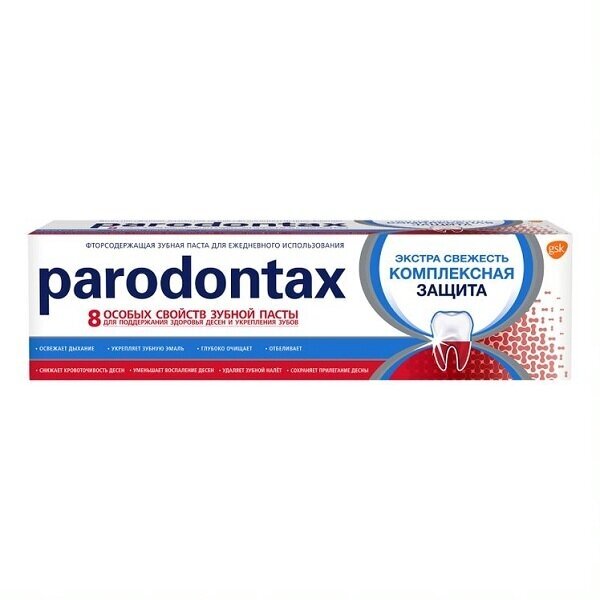 Зубная паста parodontax Комплексная Защита, от кровоточивости десен, зубного налета, для укрепления зубов и поддержания здоровья десен с фтором, 80 г