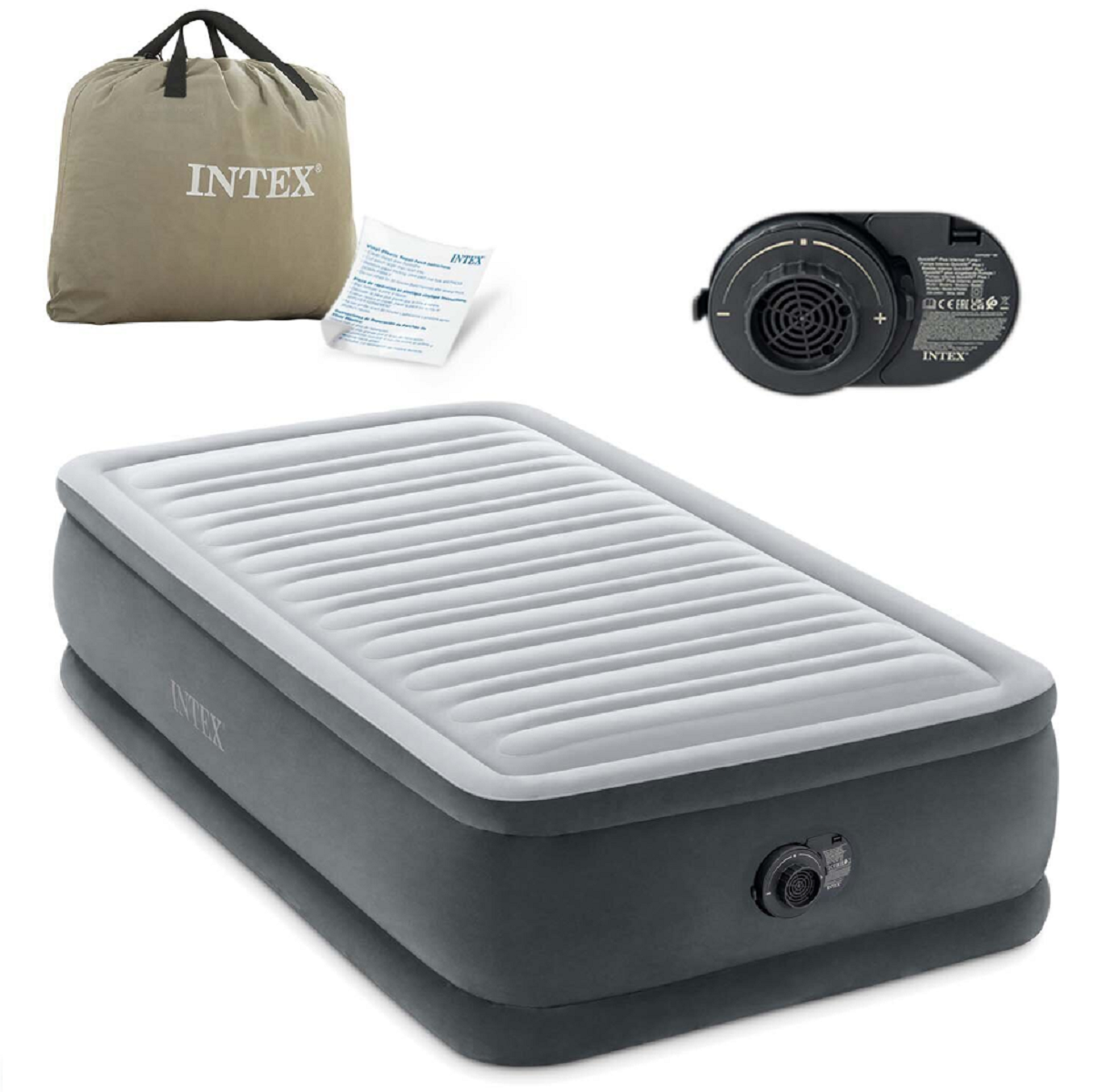 Intex Надувной матрас Твин Комфорт-Плюш 99х191х46 см с электронасосом [64412] .