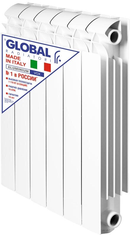 Алюминиевый секционный радиатор отопления Global VOX R 500 / с нижним подключением / 6 секций