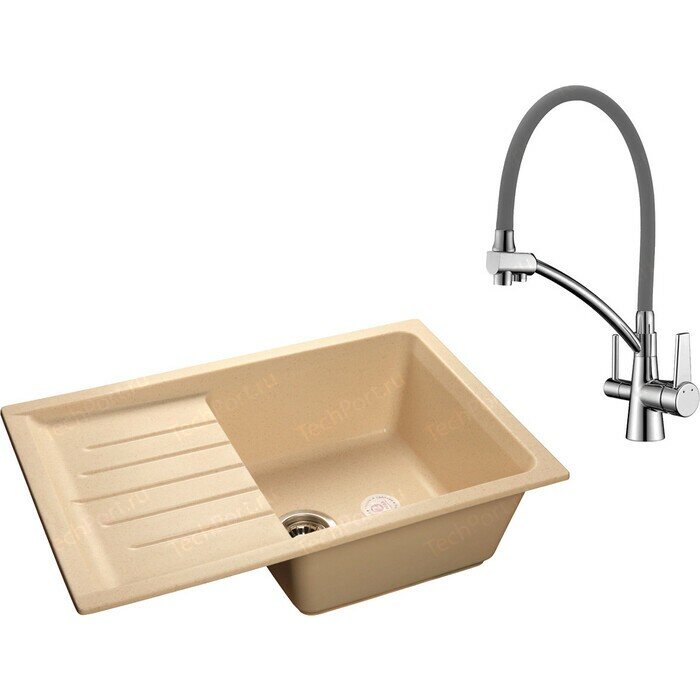 Кухонная мойка и смеситель GranFest Practik GF-P760L, Lemark Comfort LM3071C-Gray с сифоном, бежевая