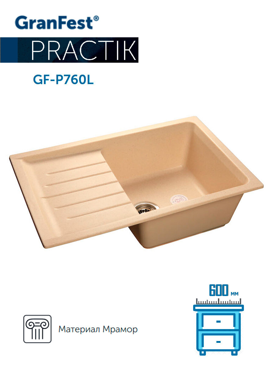 Granfest Practik GF-P-760 L, мойка, мрамор, песок .