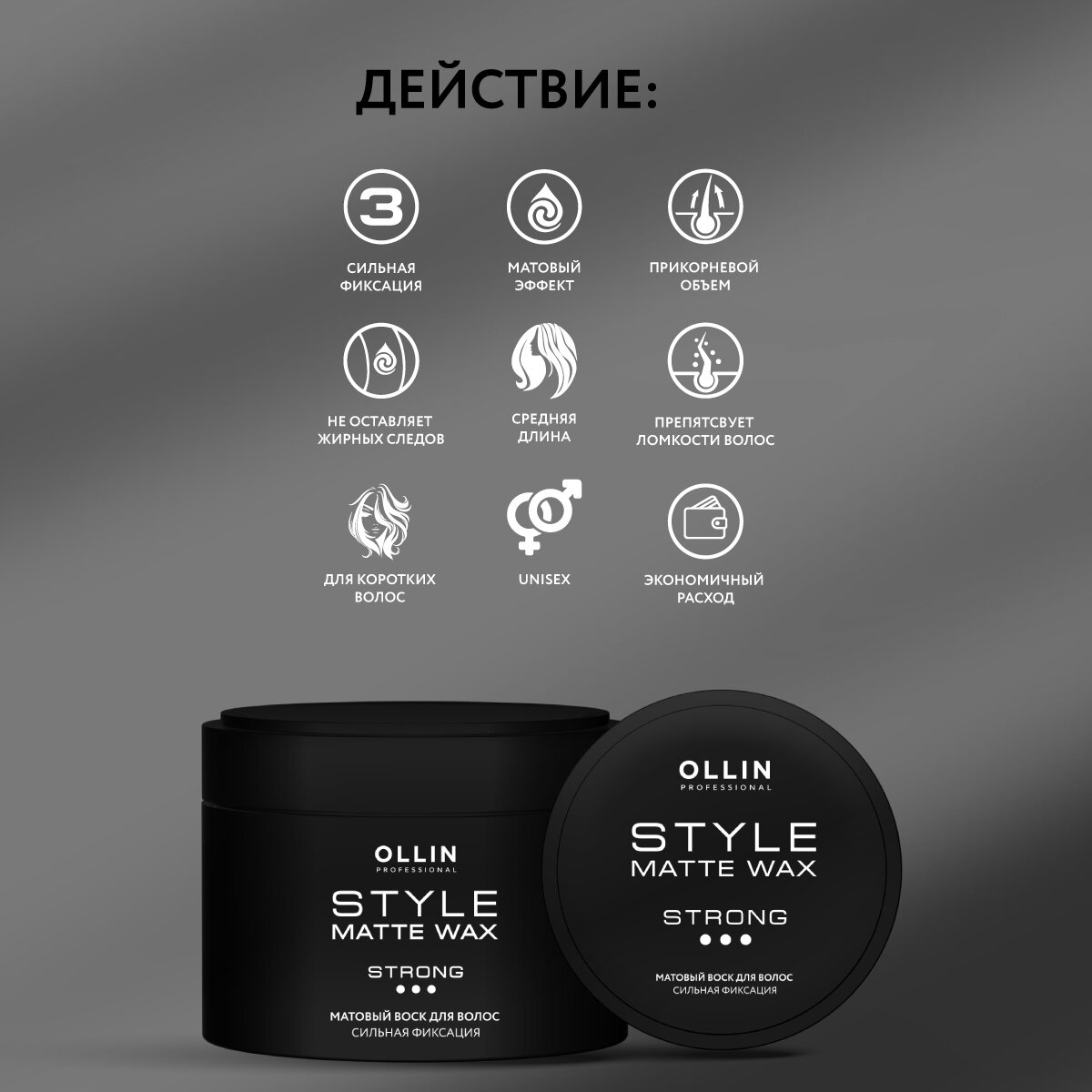 Ollin Style Strong Hold Matte Wax - Оллин Стайл Матовый воск для волос сильной фиксации, 50 г -