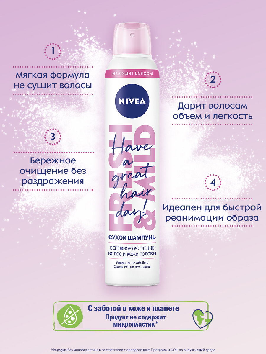 Nivea Сухой шампунь Fresh & Mild, 175 г, 200 мл - 2 шт