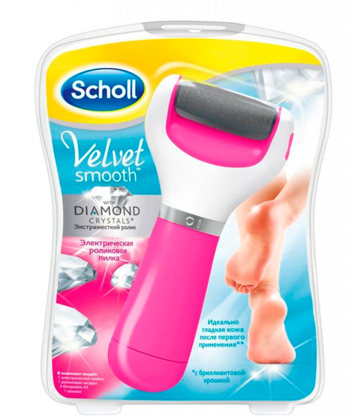 Электрическая роликовая пилка для педикюра Scholl Velvet Smooth Diamond Crystals Extra Coarse, розовый/белый интересное: