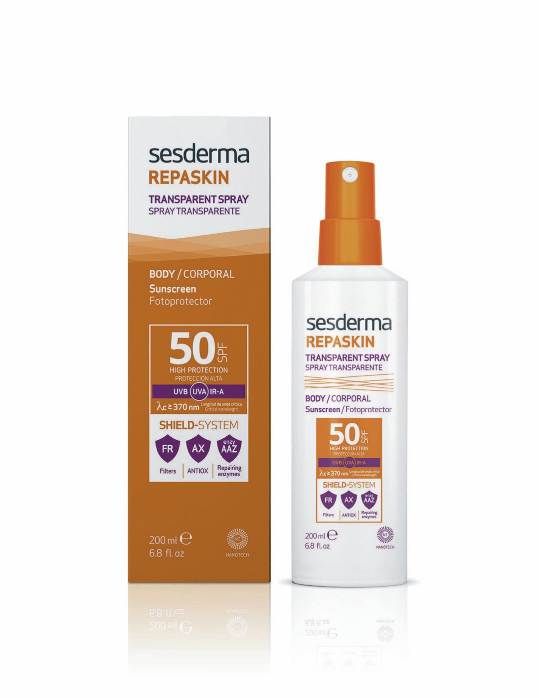 Sesderma REPASKIN TRANSPARENT SPRAY Aerosol Body Sunscreen SPF 50 - Спрей солнцезащитный прозрачный для тела, 200 мл