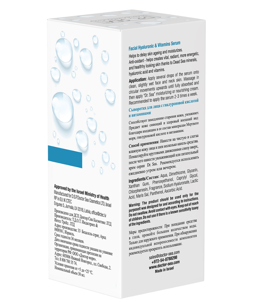Dr. Sea, сыворотка для лица с гиалуроновой кислотой и витаминами, 30 мл