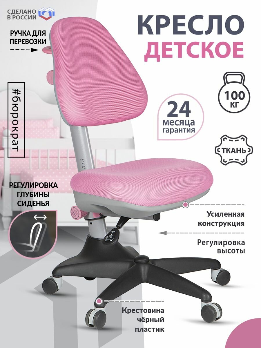 Кресло детское Бюрократ KD-2 розовый TW-13A крестов. пластик / Компьютерное кресло для ребенка, школьника, подростка