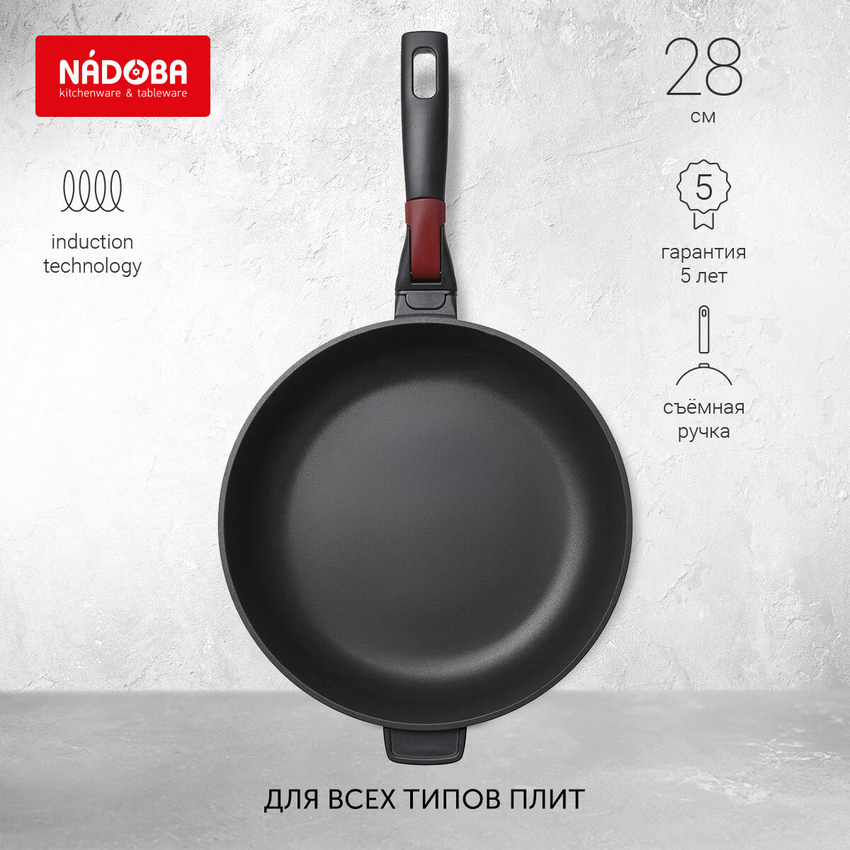 Сковорода NADOBA с антипригарным покрытием и съёмной ручкой, глубокая, черная, 28 см (728215)