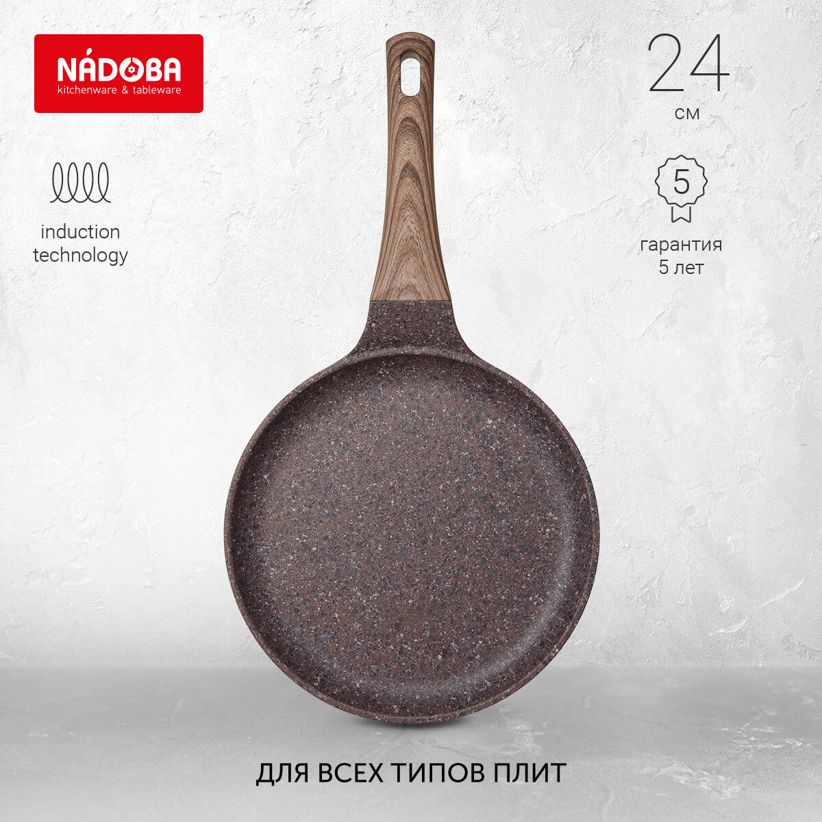 Сковорода Алюминий Литой А/П 240 Блинная Greta Гранит Индукция (6) Nadoba 728621 .