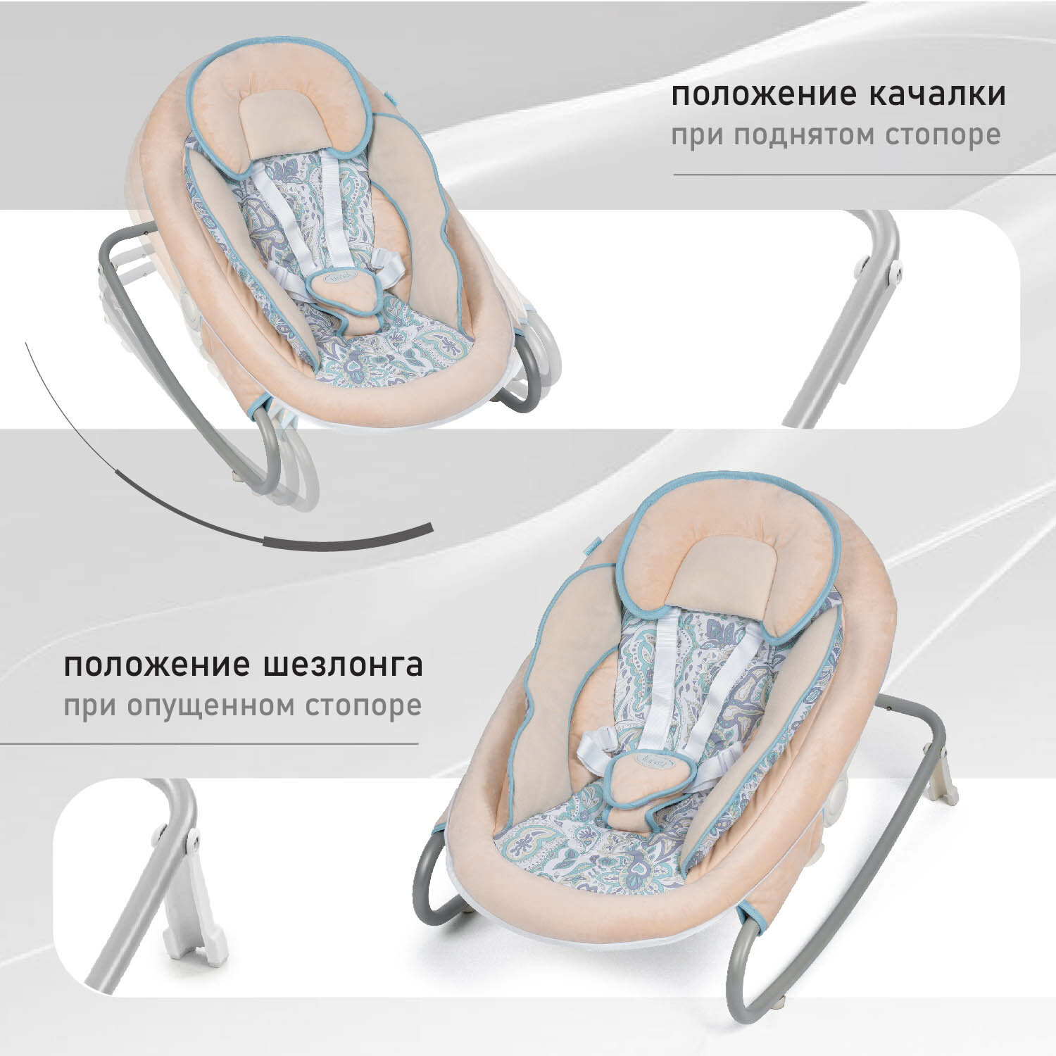 | Плюсы: | Прочный каркас, не шатается, не скользит. Люлька надежно фиксируется и ребенок в ней тоже. Укачивание автоматическое, а если снять шезлонг с каркаса и поставить его на пол можно укачивать вручную, есть 3 скорости, этого достаточно. Есть таймер, часто использую, удобно. Есть музыкальное сопровождение и мобиль с игрушками, музыка тихая и приятная, помогает малышу успокоится и уснуть. |