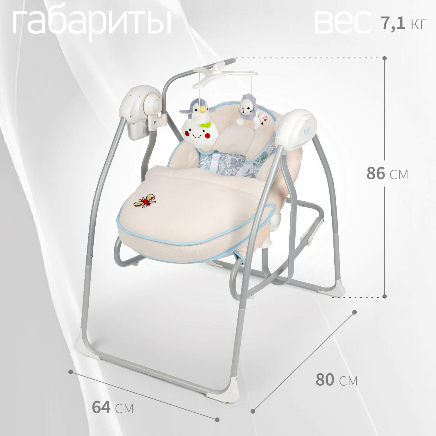 | Плюсы: | Не дорогие, легкие, компактные, но при этом устойчивые и прочные качели. Музыкальный мобиль с милыми игрушками, таймер. |