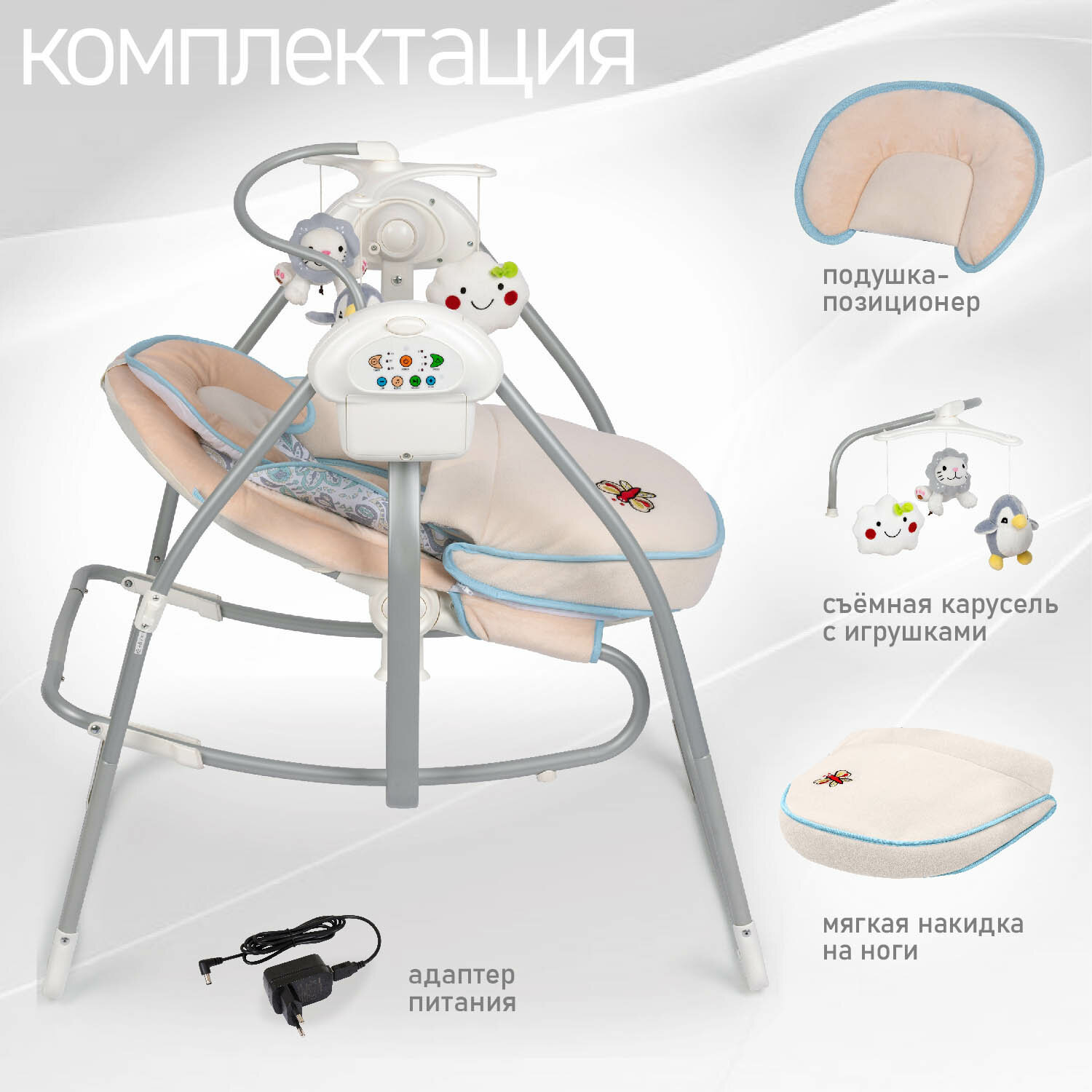 | Отзыв: | Хорошие электрокачели, за счет 3 уровней положения ребенок в них может как играться, так и спать с удобством. Нормальная подборка убаюкивающих мелодий, дочка в качельках быстро успокаивается и засыпает. Удобно, что мобиль с игрушками съемный, при необходимости можно запросто снять. Максимум по весу 9 кило, так что нам еще хватит надолго. |