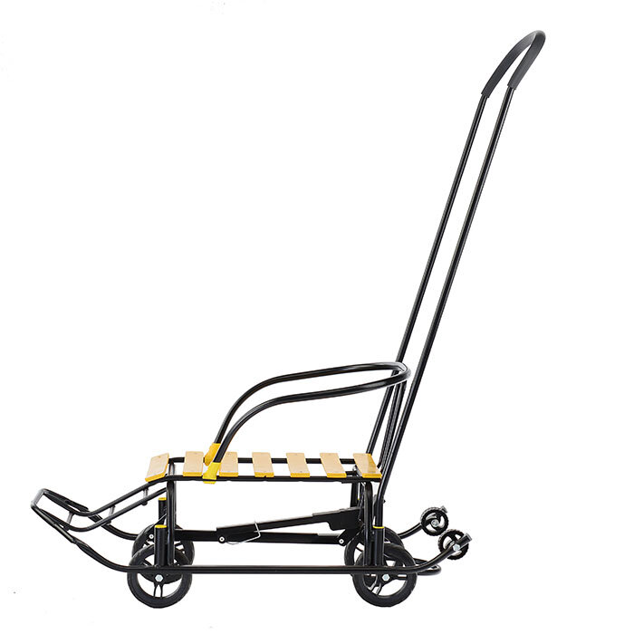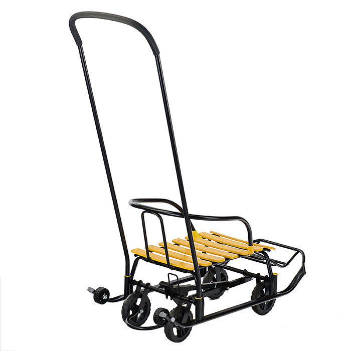 Санки детские с выдвижными колесами, спинкой и ручкой GALAXY "Мишутка-1" Универсал (черный-желтый)