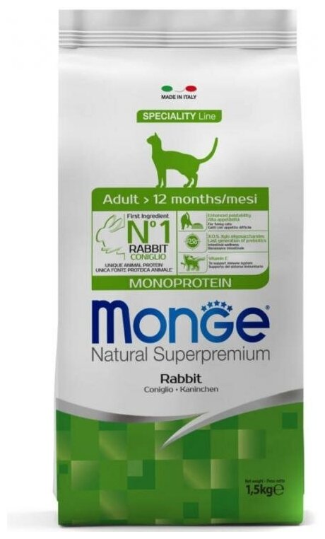 MONGE SPECIALITY MONOPROTEIN CAT ADULT RABBIT монобелковый для взрослых кошек с кроликом (1,5 кг)