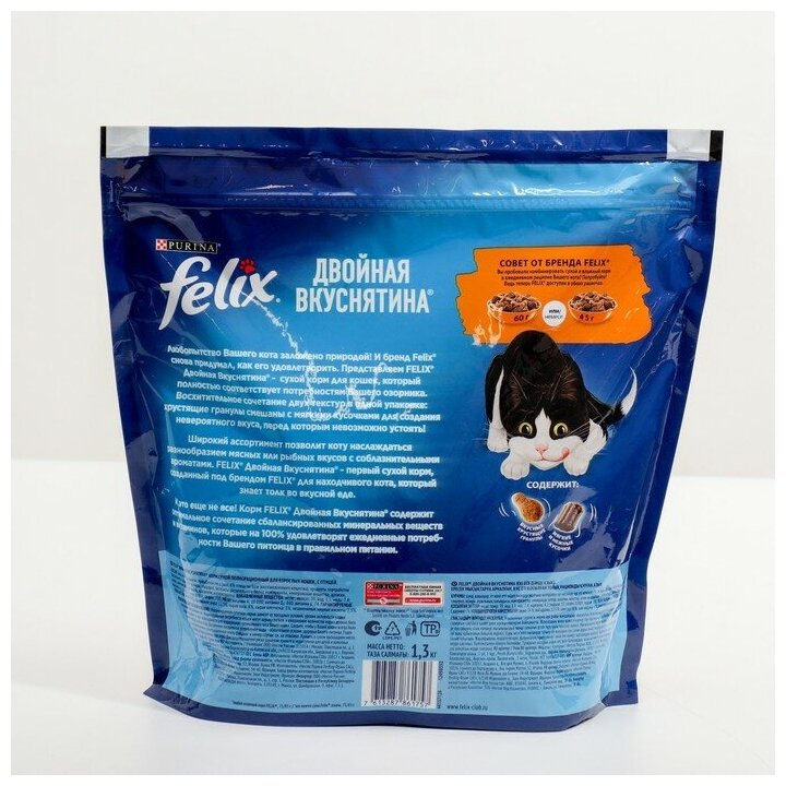 FELIX Сухой корм Felix "Двойная вкуснятина", для кошек, птица, 1.3 кг
