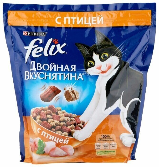 Сухой корм Felix Двойная вкуснятина" для кошек, птица, 600 г