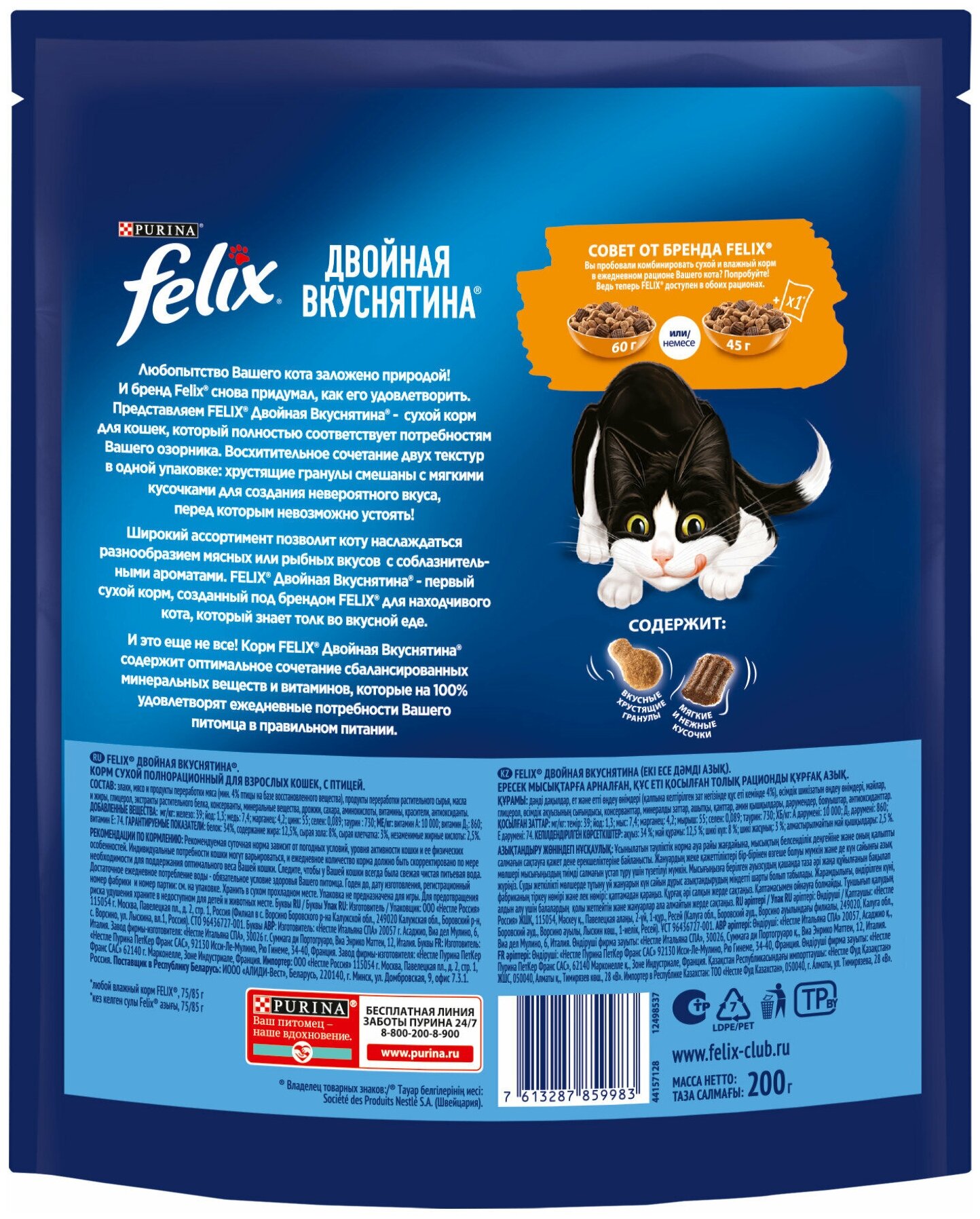 Сухой корм Felix Двойная Вкуснятина для взрослых кошек, с птицей, Пакет, 200г х 1 шт
