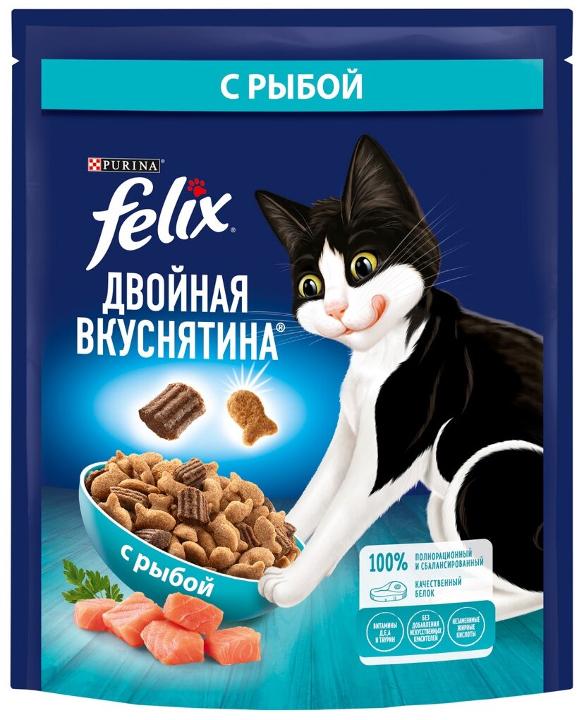 Купить Сухой корм Felix Двойная Вкуснятина для взрослых кошек, с рыбой, Пакет, 200г х 3 шт