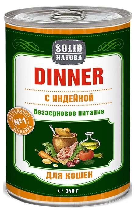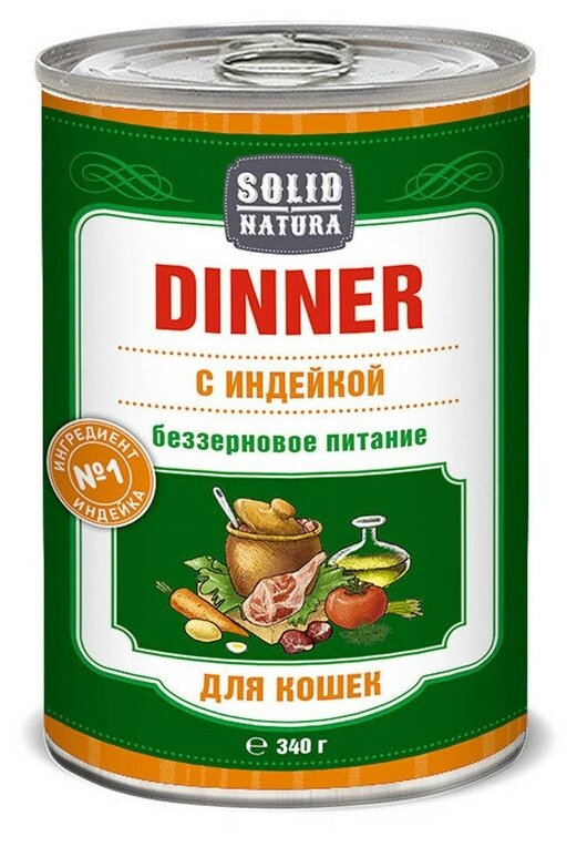 Влажный корм для кошек, Solid Natura Dinner, индейка, упаковка 6 шт х 340 г
