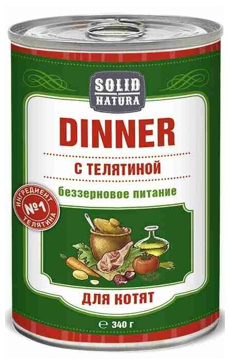 Solid Natura Dinner Телятина влажный корм для котят в жестяной банке - 340 г х 12 шт